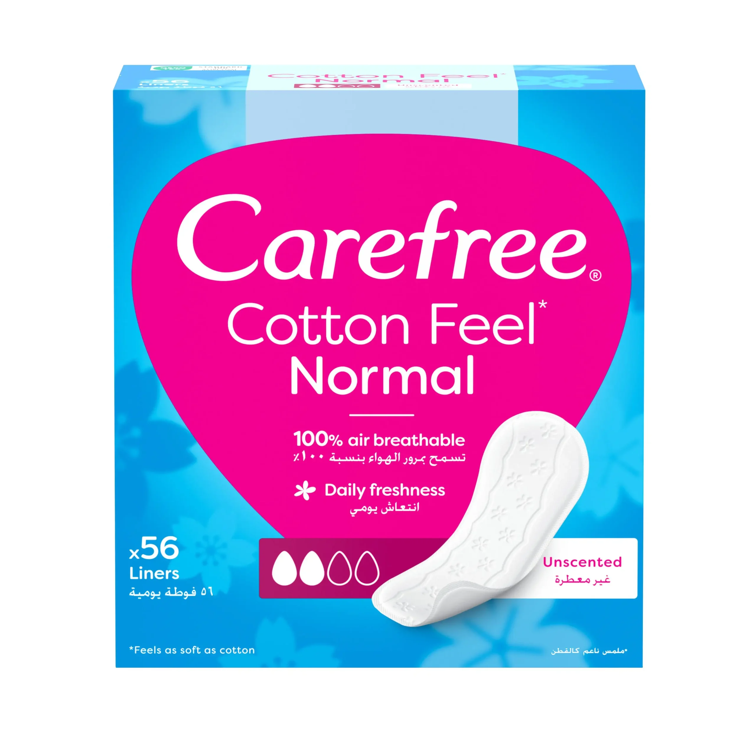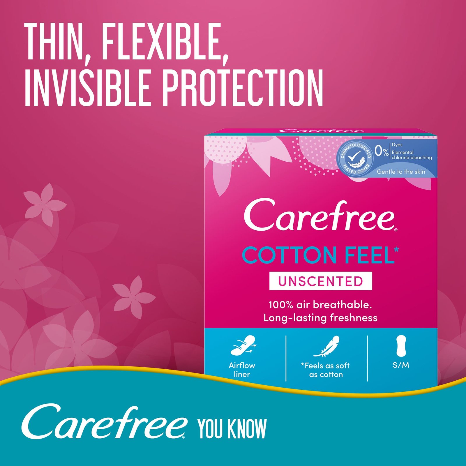 Daily freshness and comfort with Carefree Cotton panty liners. Soft feel, breathable, and stay-in-place.