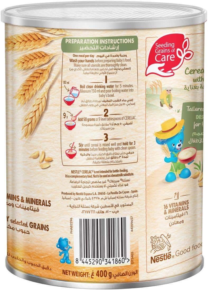NESTLÉ CERELAC Baby Cereal with Wheat & Honey is a delicious and nutritious wheat-based cereal with milk powder, perfect for your baby from 6 months. Fortified with iRON+ to help support healthy brain and cognitive development, Cerelac also contains BL and immune nutrients (A, C, D, and Zinc) to support your baby’s immune system. Made from 100% natural grain and easily digestible, Cerelac is a convenient and nutritious way to slowly introduce new tastes and encourage your baby to enjoy new experiences with food.