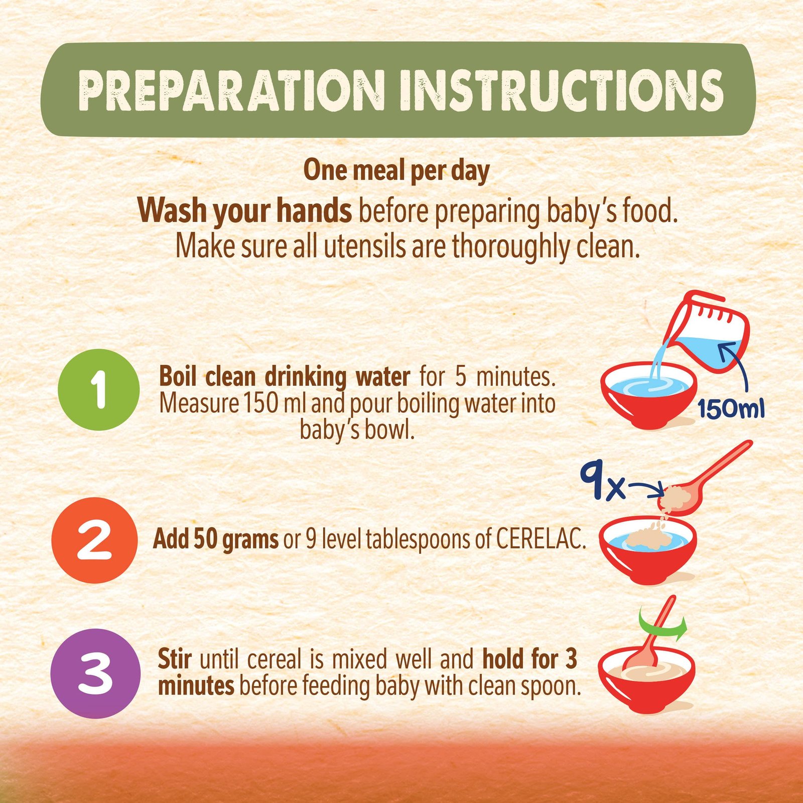 Stir until the cereal is smooth and feed immediately using a clean spoon. Do not keep unfinished portions.