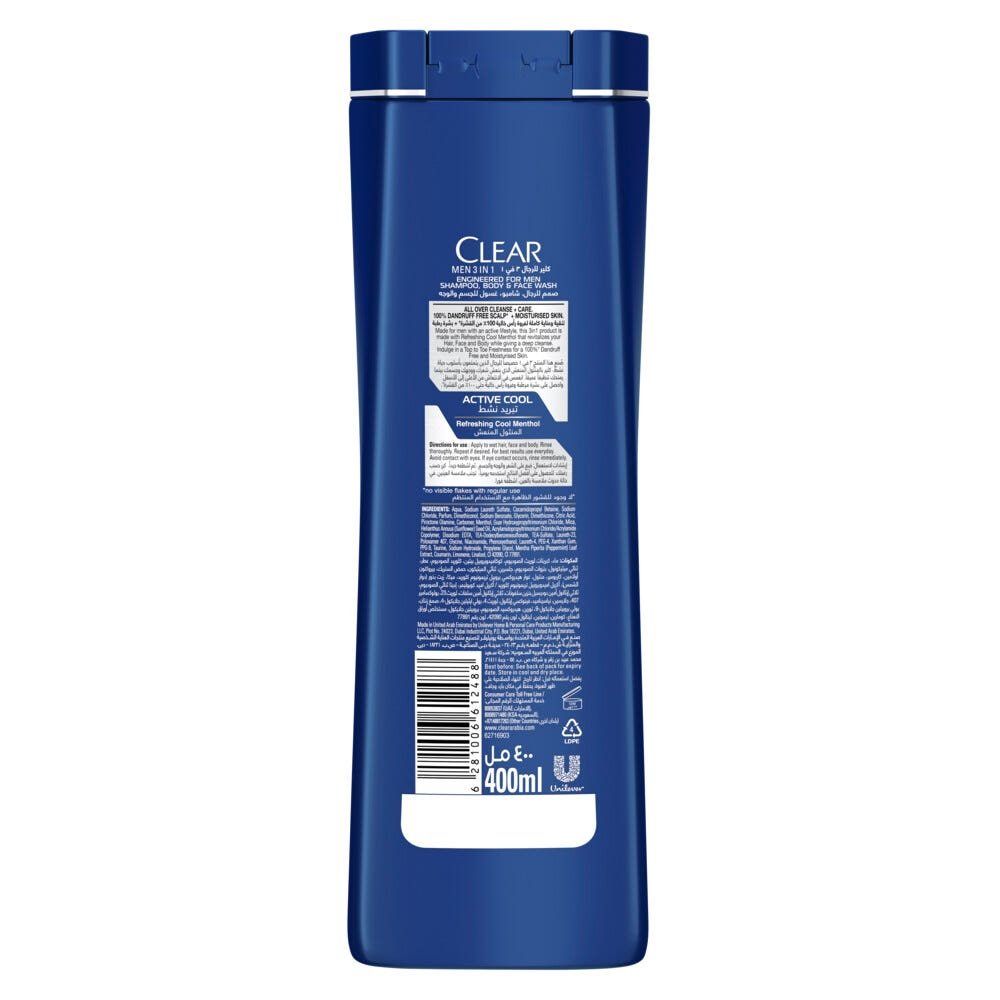 Clear Shampoo 3 In 1 Active Cool 400ml – Unbeatable Freshness