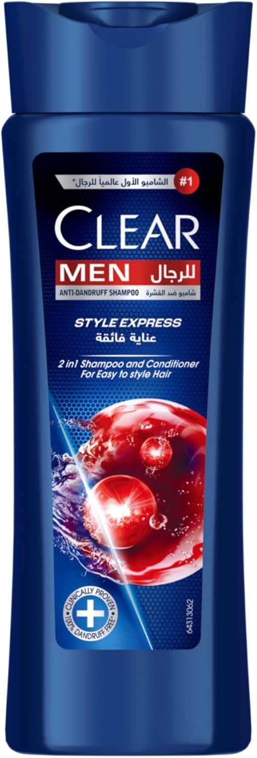 Clear Style Express 2-in-1 Shampoo for Men: Effective hair care and dandruff control, a 2-in-1 formula for easy use and lasting freshness.