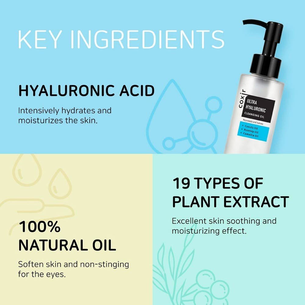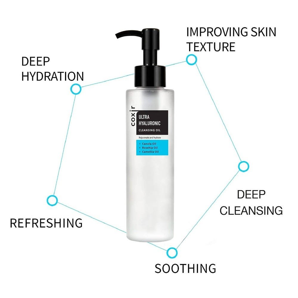 Coxir Ultra Hyaluronic Cleansing Oil: Deeply removes makeup & oil, leaving skin hydrated and clean.