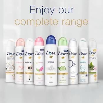 Dove Original Spray: 48hr freshness, smooth skin with moisturizing cream, 0% aluminium.