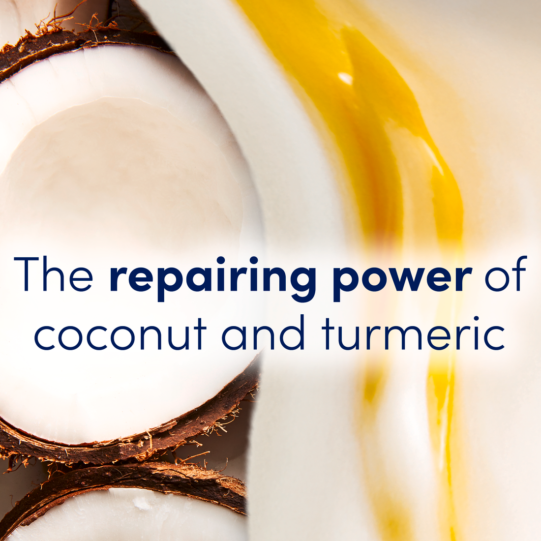 Discover the secret to healthy hair with Dove Shampoo with Coconut Oil & Turmeric. Inspired by Indian beauty rituals for treating damaged hair, this shampoo is enriched with coconut oil and turmeric, renowned for their incredible repairing properties for damaged hair.
