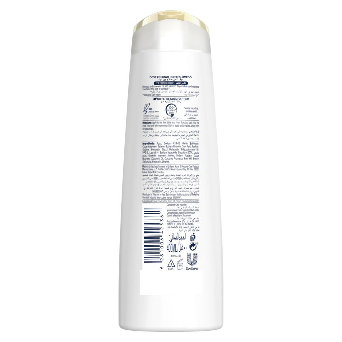 Dove Shampoo with Coconut Oil & Turmeric – 400ml for Damaged Hair Repair