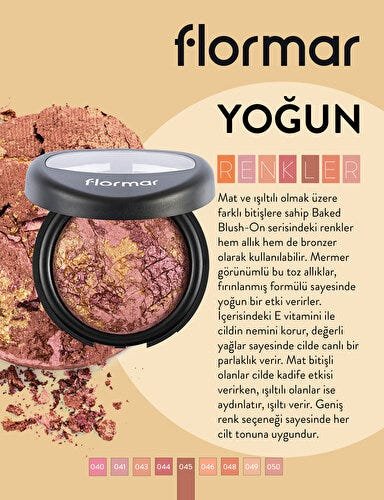 Natural radiance with Flormar Baked Blush-On – 045 Touch Of Rose. Easy-to-blend powder for a luminous finish.