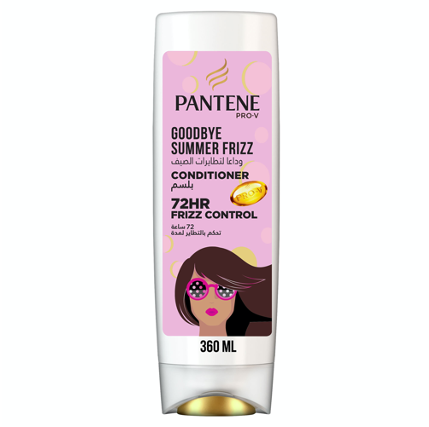 Pantene Conditioner Goodbye Summer Frizz 360ml is the perfect solution for frizzy hair. This amazing conditioner gives you up to 72 hours of frizz control thanks to its pro-vitamin enriched formula that deeply moisturizes and fills pores, preventing frizz and maintaining hair’s smoothness and shine.
