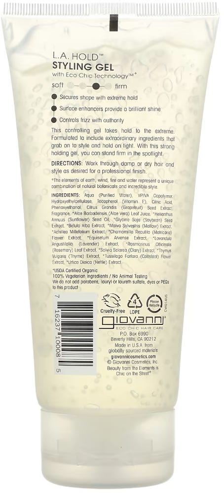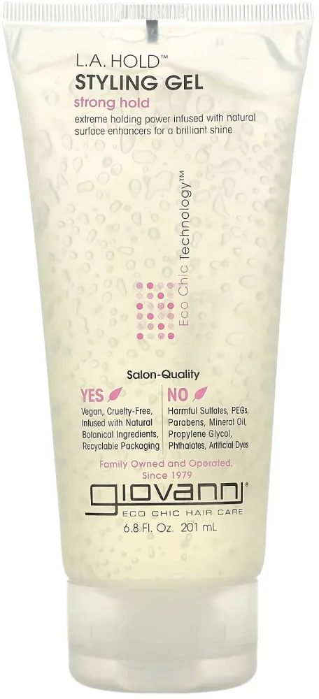 Giovanni L.A. Hold Styling Gel: Extreme hold, frizz control, natural shine. Perfect for all hair types. Vegan & color-safe.