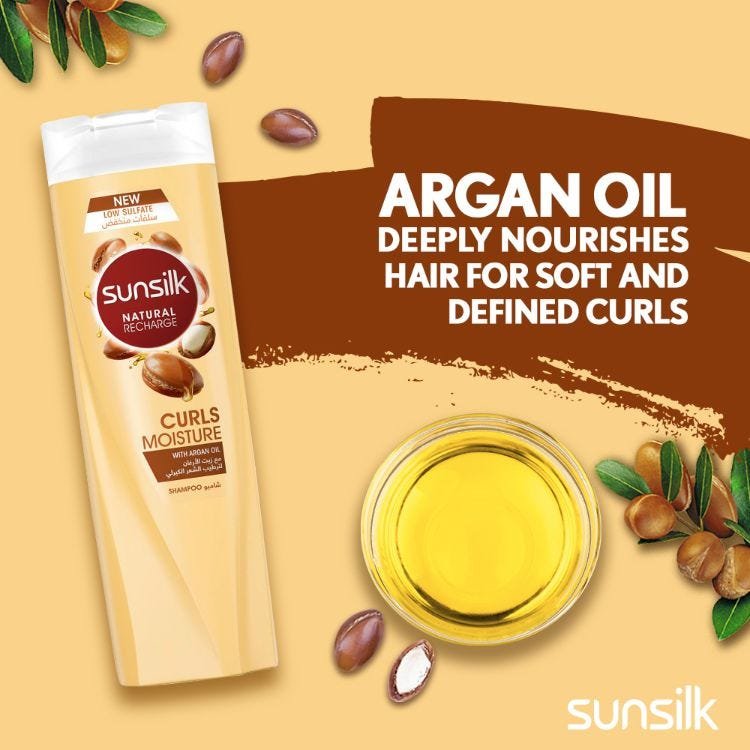 Get shiny, soft curls with Sunsilk Argan Oil Shampoo! Rich argan oil formula.