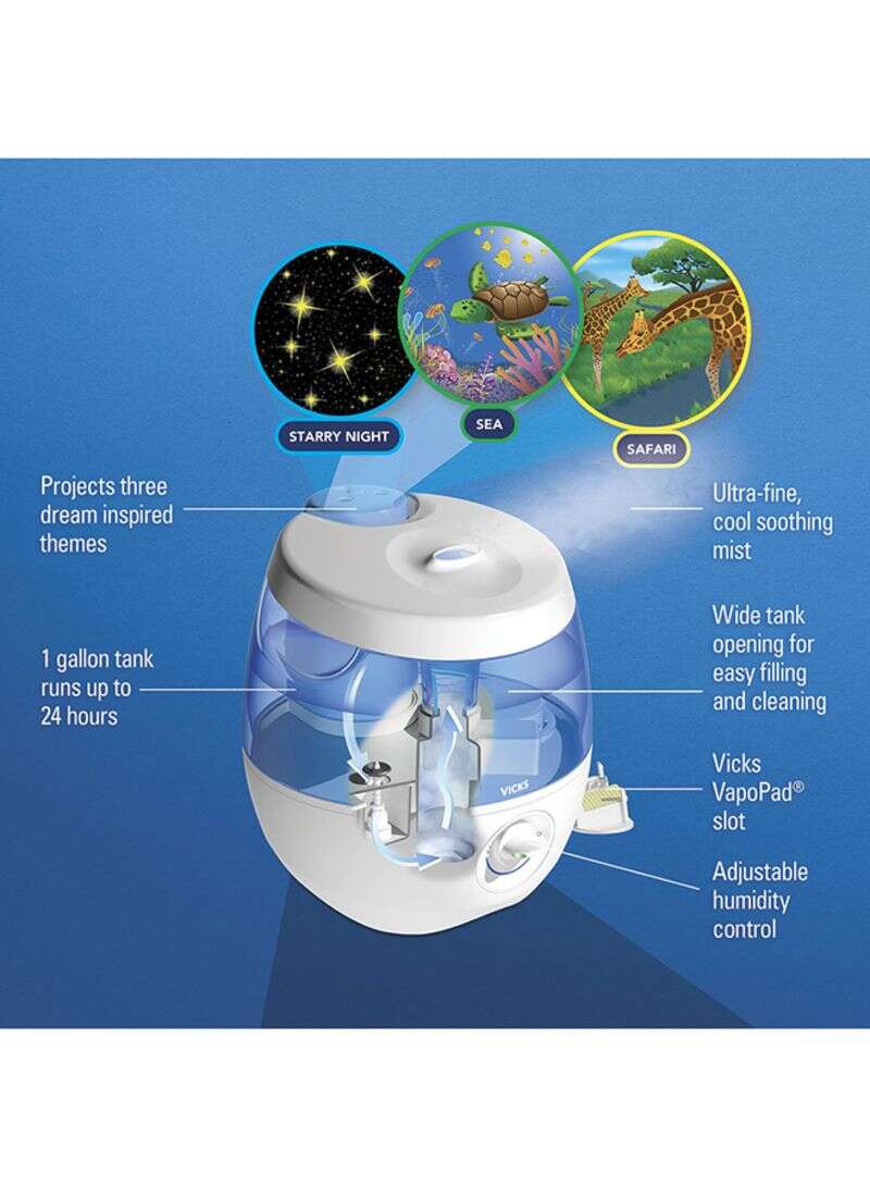 Vicks Sweet Dreams Humidifier: Peaceful sleep & enchanting visuals for your child, providing relief from cough & congestion.