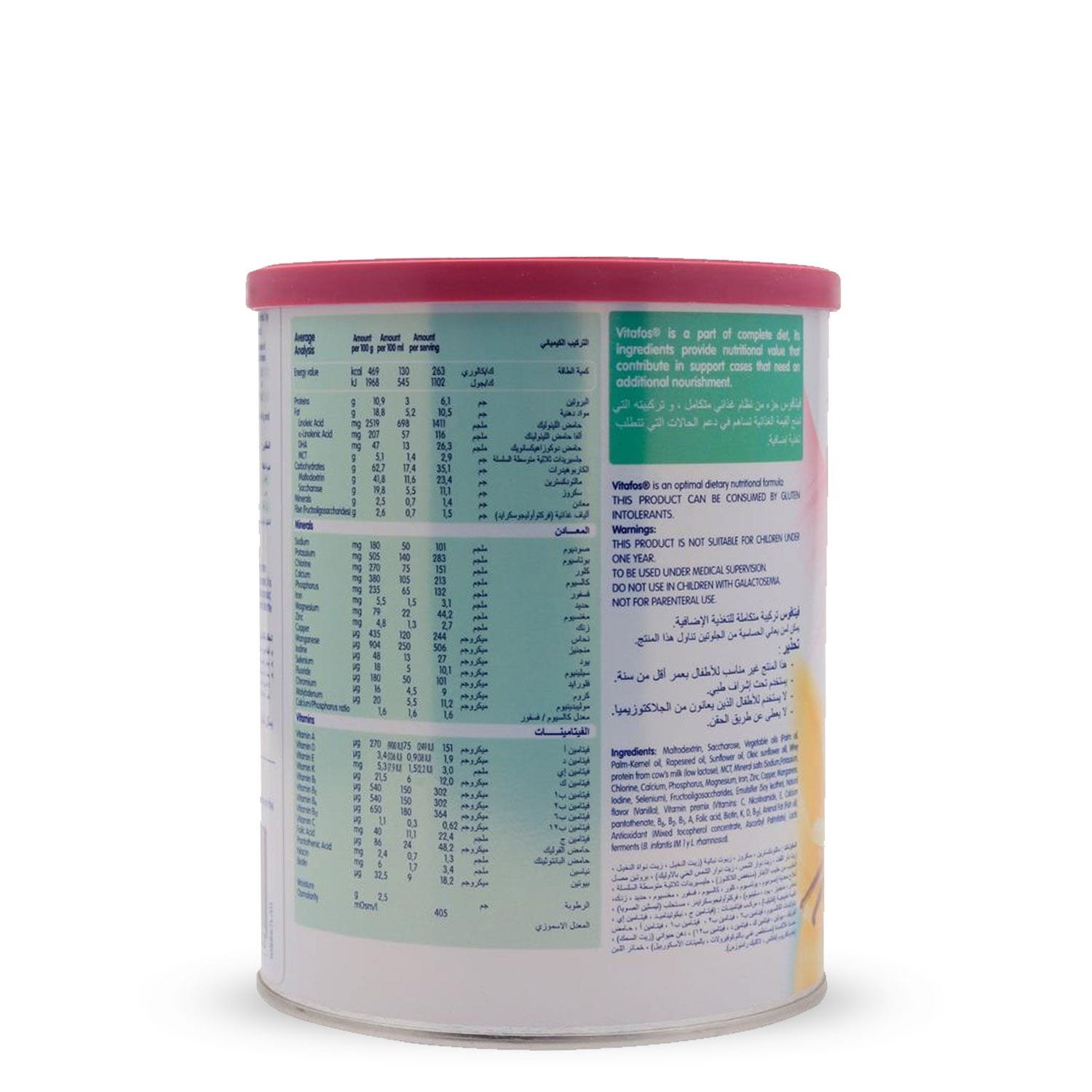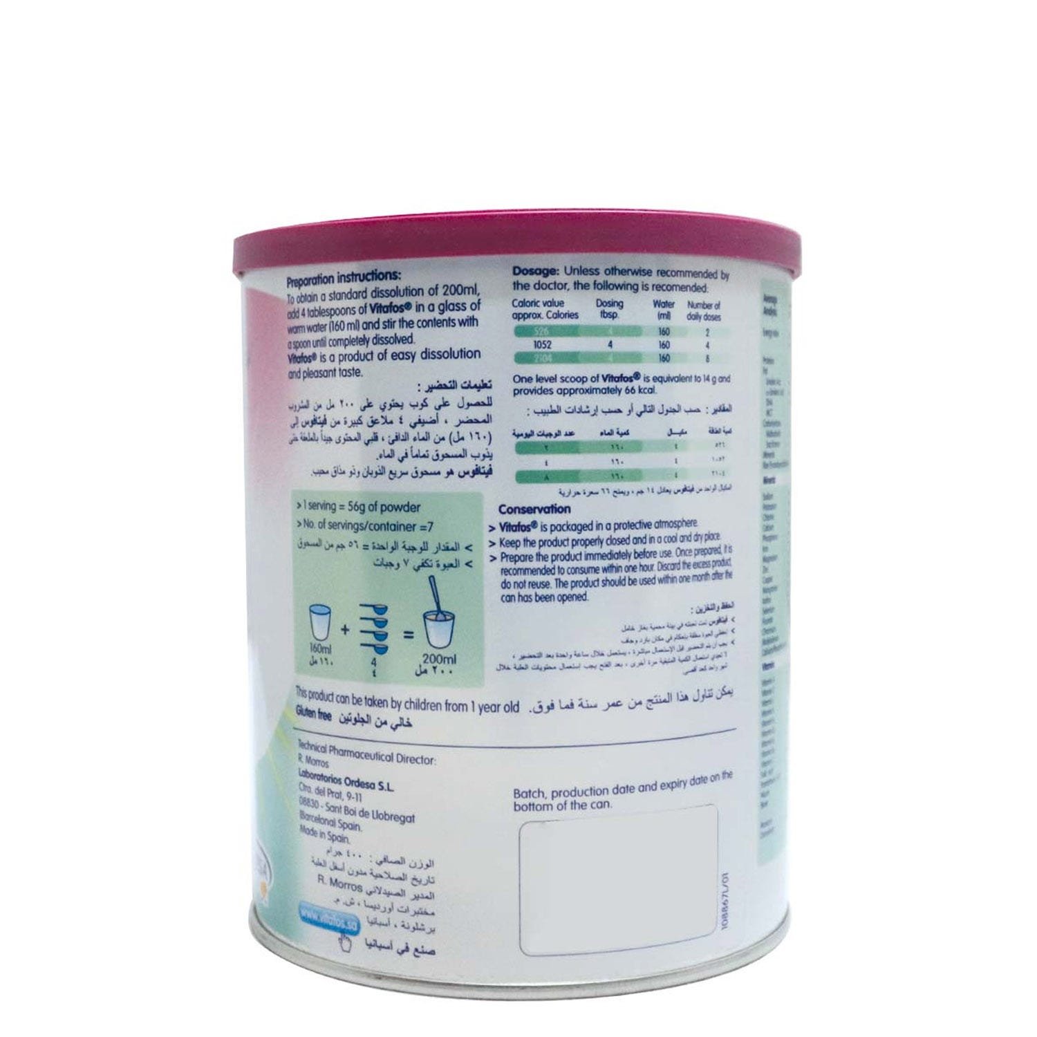 Vitafos is a complete and balanced nutritional formula for children aged 1-10 years, specially designed to meet their diverse nutritional needs. It is rich in proteins, vitamins, minerals, and fiber to promote healthy growth and development. Vitafos features a delicious vanilla flavor, making it easy to use and digest. With regular use, Vitafos contributes to strengthening the immune system and protecting the child from diseases. The Vitafos formula is gluten-free and suitable for children with lactose intolerance.
