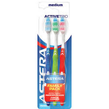 أستيرا فرشاة أسنان اكتيف تريو وسط العبوة الثلاثية – حماية مثالية للفم