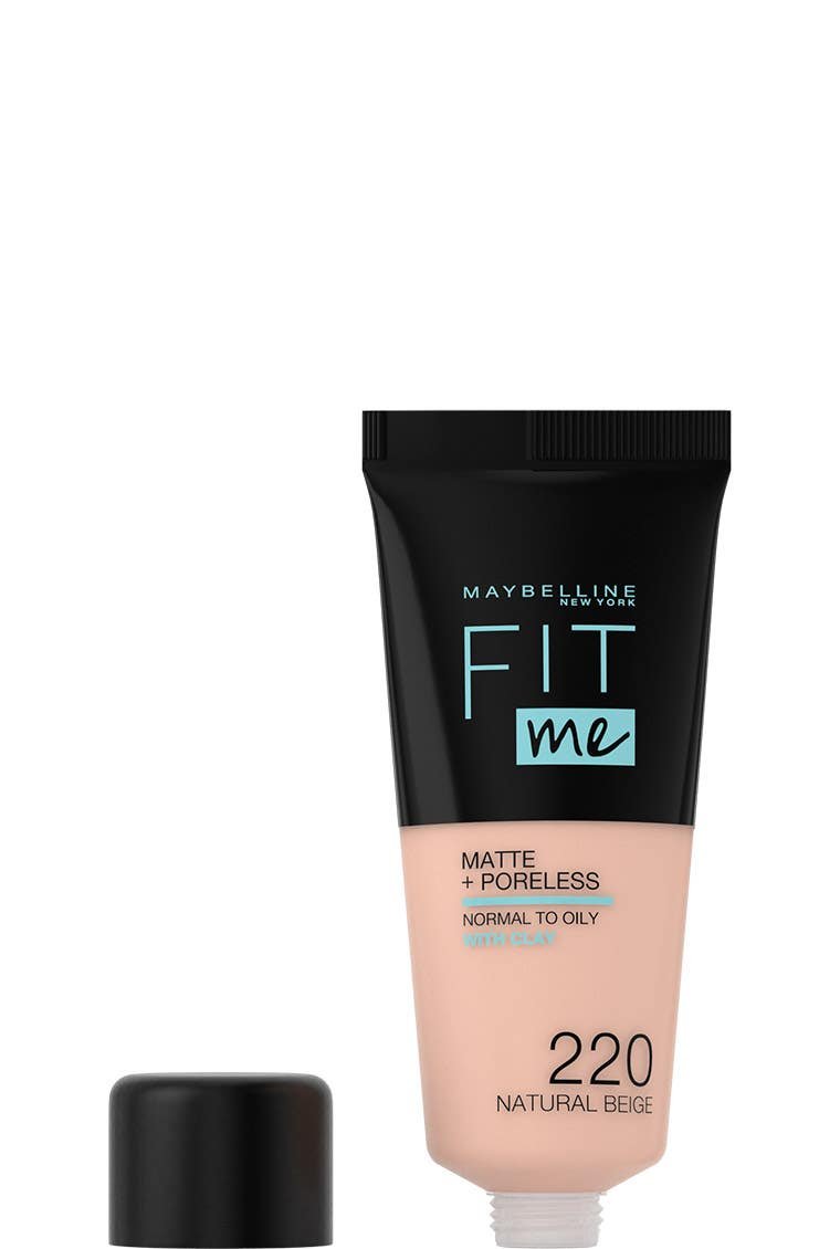 اكتشفي التغطية المثالية مع كريم أساس Maybelline Fit Me Matte & Poreless بلون 220 بيج طبيعي.