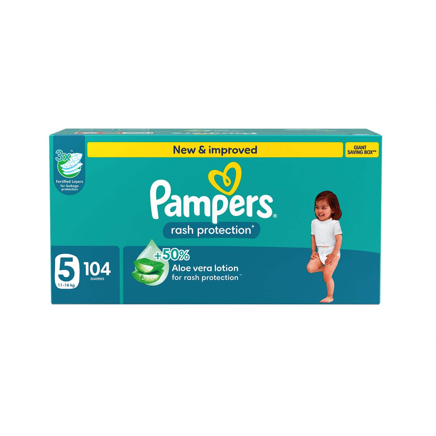 حفاضات بامبرز للحماية من التسلخات، مقاس ٥، ١٠٤ قطعة، مع ٥٠٪ كريم الصبار.