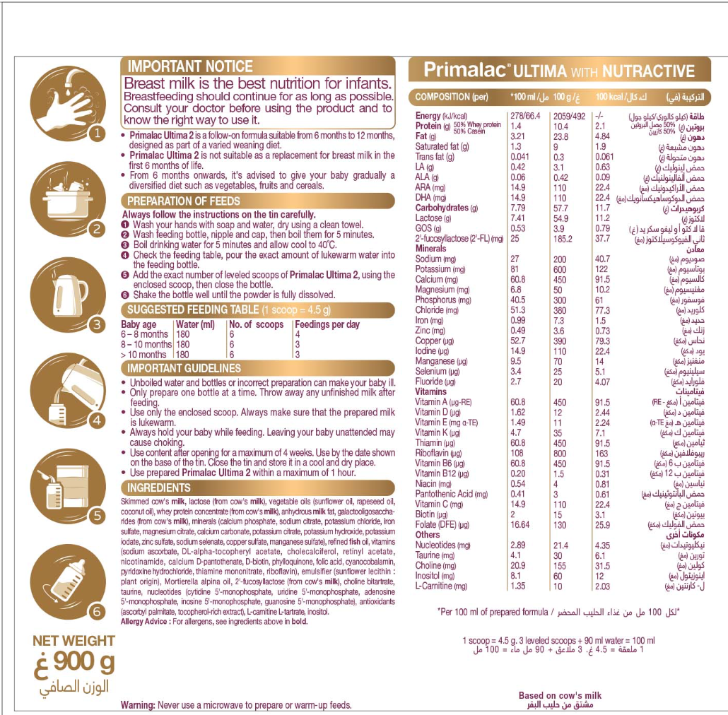 🔹 إرشادات استخدام بريمالاك بريميوم ألتيما حليب أطفال (2):