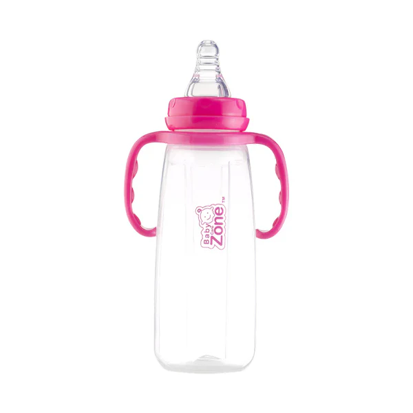 بيبي زون رضّاعة أطفال بلاستيكية بمقبض 240 مل لراحة الرضاعة