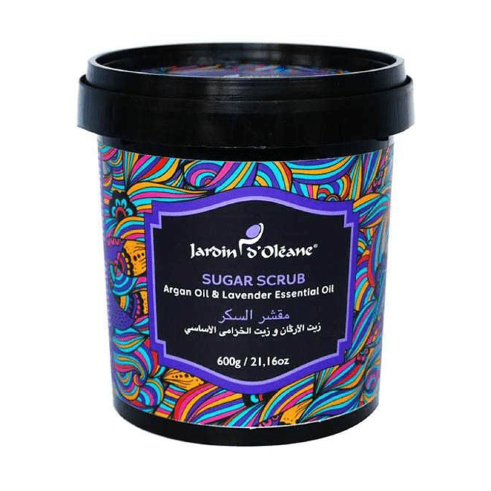 اكتشفي جاردن اوليان مقشر السكر بزيت الأركان والخزامى 600 جرام. يزيل الخلايا الميتة، يغذي ويرطب البشرة، ويتركها ناعمة مع رائحة منعشة. تجديد مثالي لبشرتك.