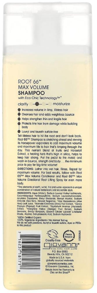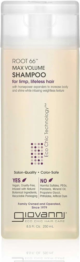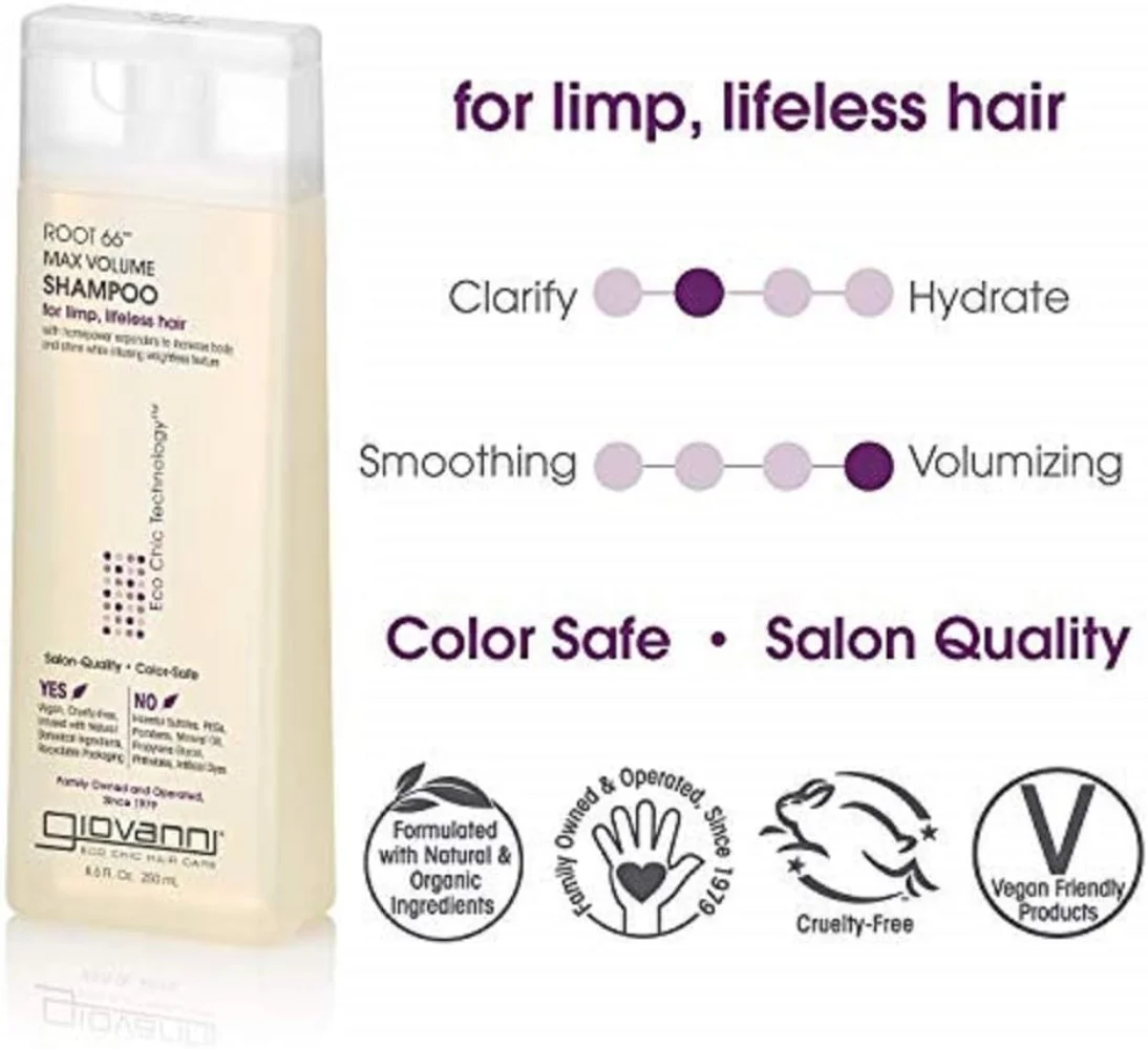 شامبو جيوفاني رووت 66 يزيد كثافة وحجم الشعر الخفيف والناعم. يقوي الشعر ويحميه.