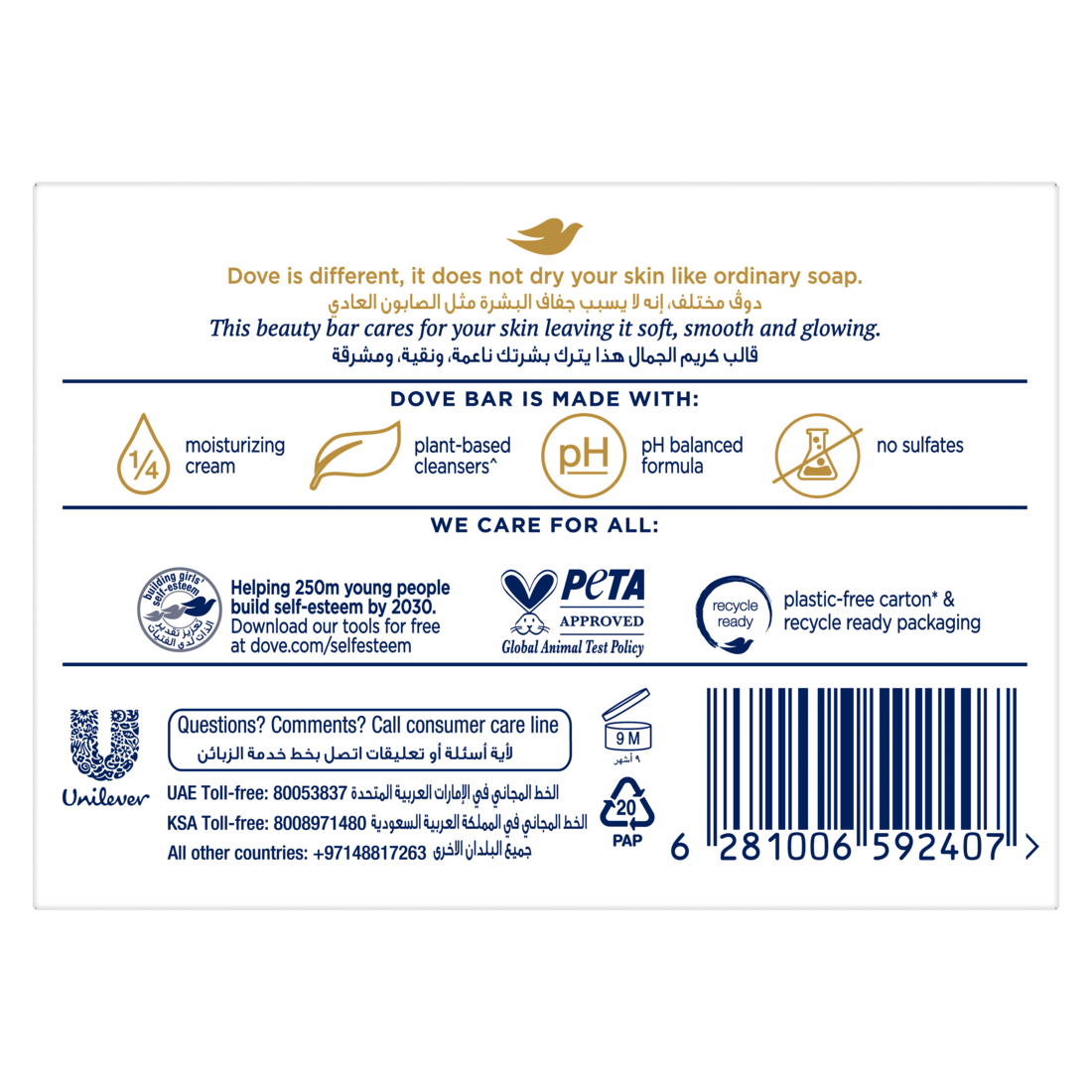 دوف صابون بيوتي كريم ابيض: بشرة ناعمة ومشرقة. غني بـ 1/4 كريم مرطب. لجميع أنواع البشرة.