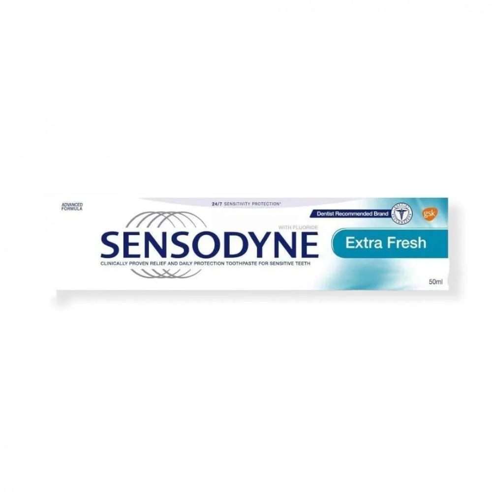 سنسودايـن معجون أسنان انتعاش زائد 50 مل: يقدم حماية فائقة للأسنان الحساسة مع انتعاش قوي يدوم. يقوي المينا، يمنع التسوس، ويعزز صحة اللثة. احصل على ابتسامة صحية ومنعشة.