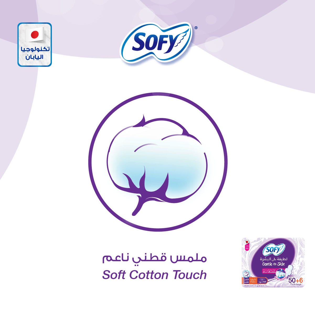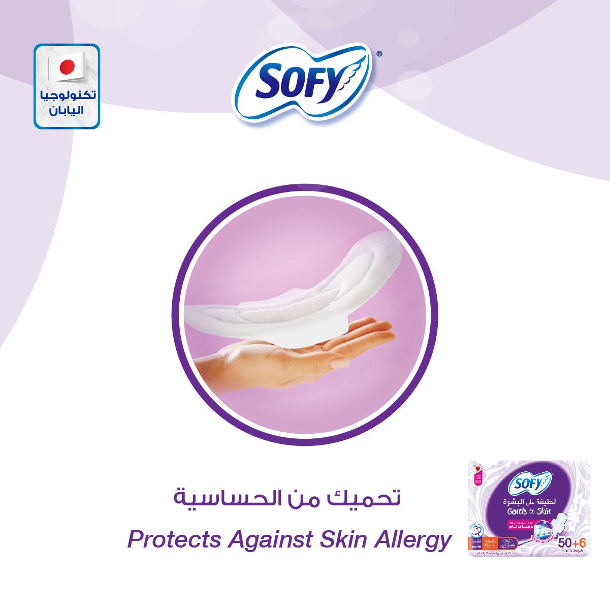 استمتعي بالنعومة والامتصاص الفائق مع سوفي فوط صحية رفيعة كبير بأجنحة 56 قطعة.