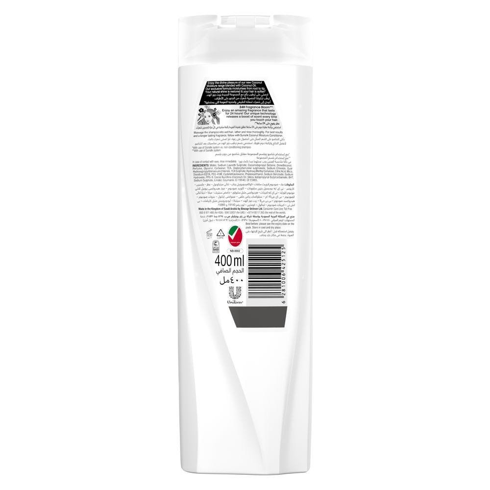 استمتعي بشعر ناعم ولامع مع صنسيلك شامبو بزيت جوز الهند اللمرطب 400 مل! تركيبة غنية بالرطوبة.