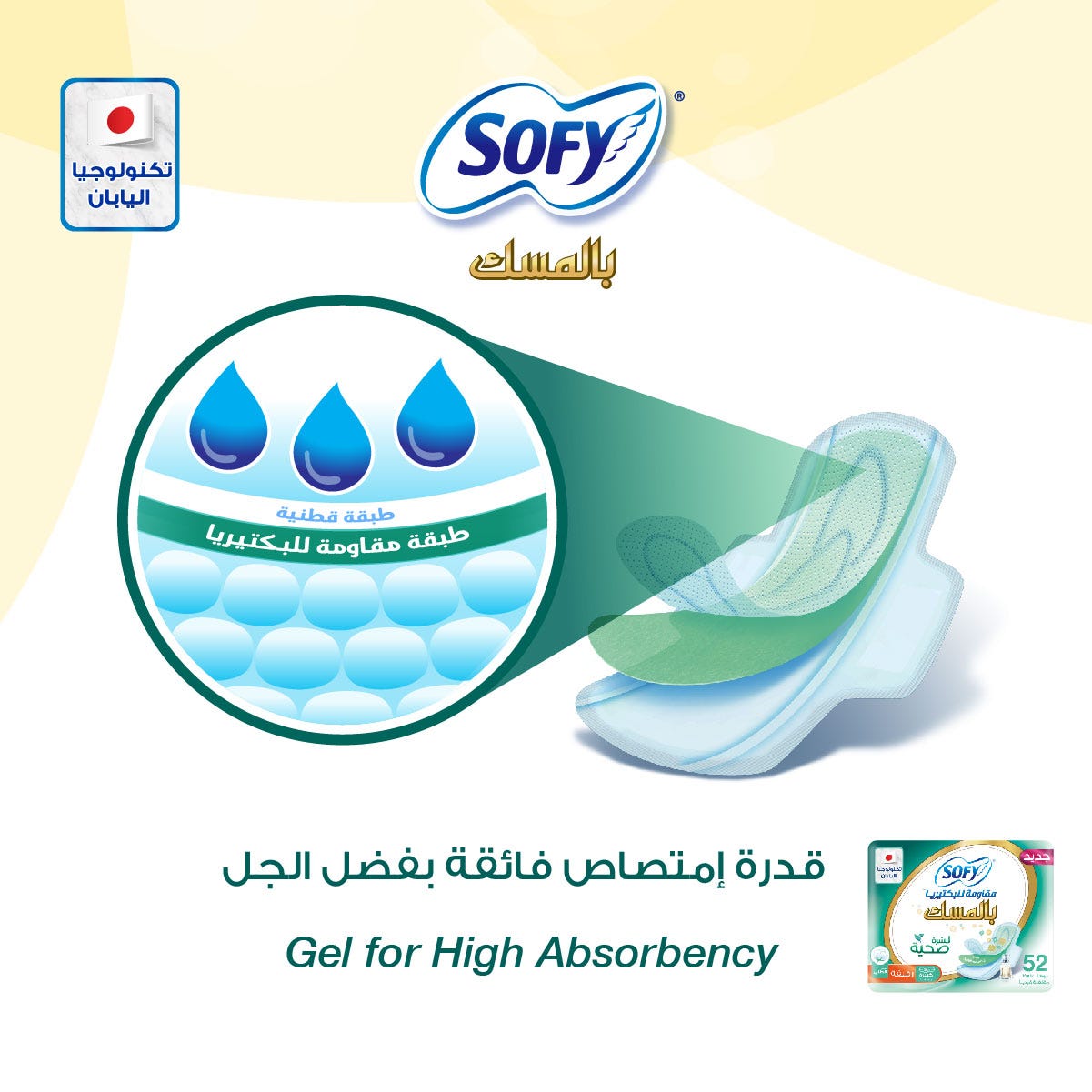 اكتشفي الحماية الفائقة مع سوفي مقاومة للبكتيريا بالمسك كبير بالأجنحة. تتميز هذه الفوط بوجود طبقة مقاومة للبكتيريا تقلل من نمو البكتيريا على السطح، مما يساعد على حماية بشرتك من التحسس ويمنحك شعوراً بالصحة والانتعاش طوال اليوم.