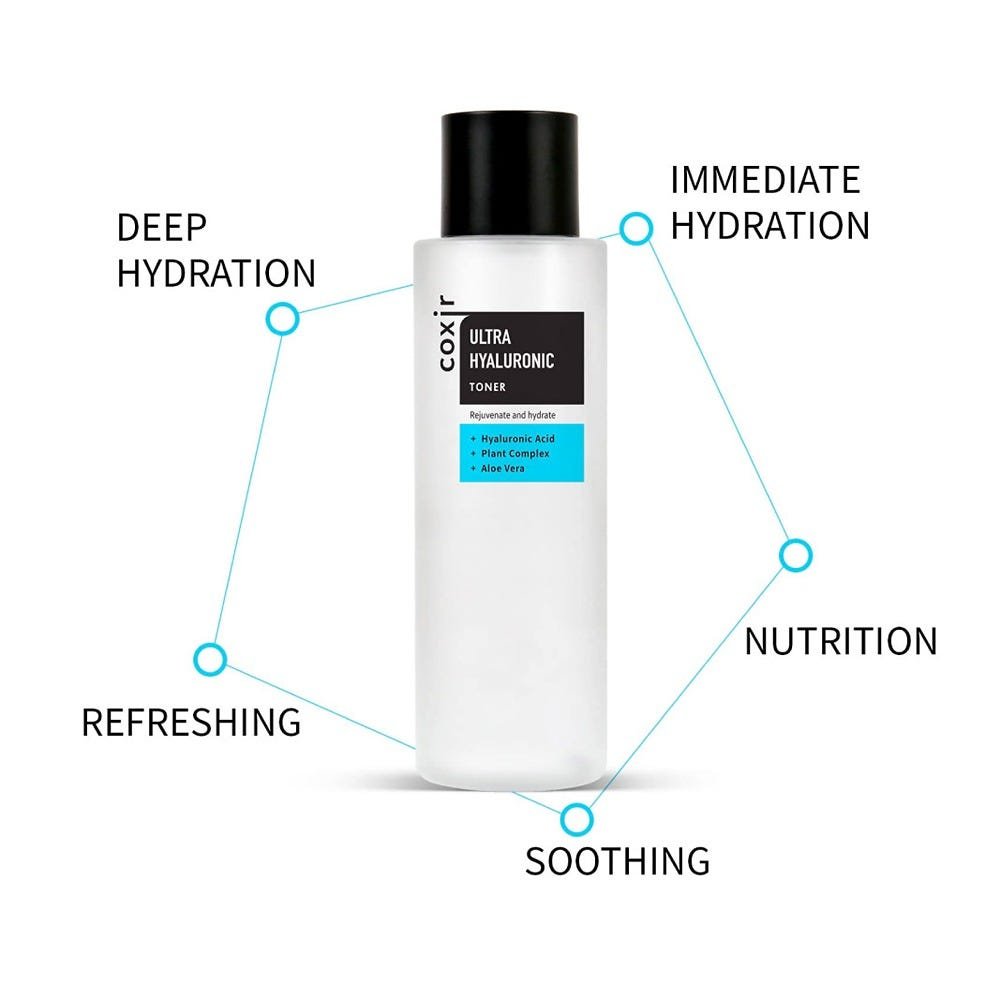 تونر كوكسير ألترا هيالورونيك لترطيب عميق وتنقية المسام وتقليل التصبغات. لبشرة شابة وصحية.