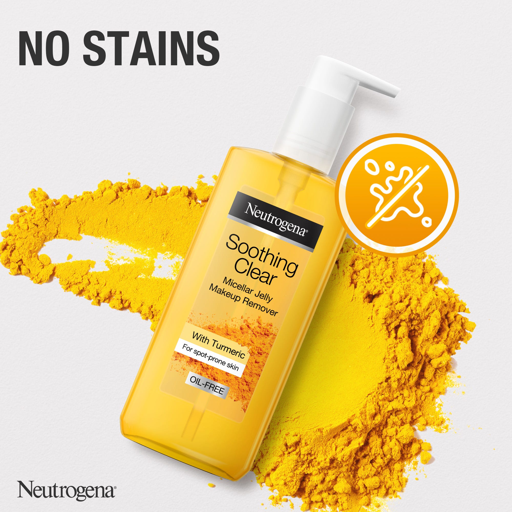 نيتروجينا جيلي ميسيلار الكركم: إزالة فورية للمكياج وتهدئة للبشرة المعرضة للبثور. تركيبة لطيفة بالكركم.